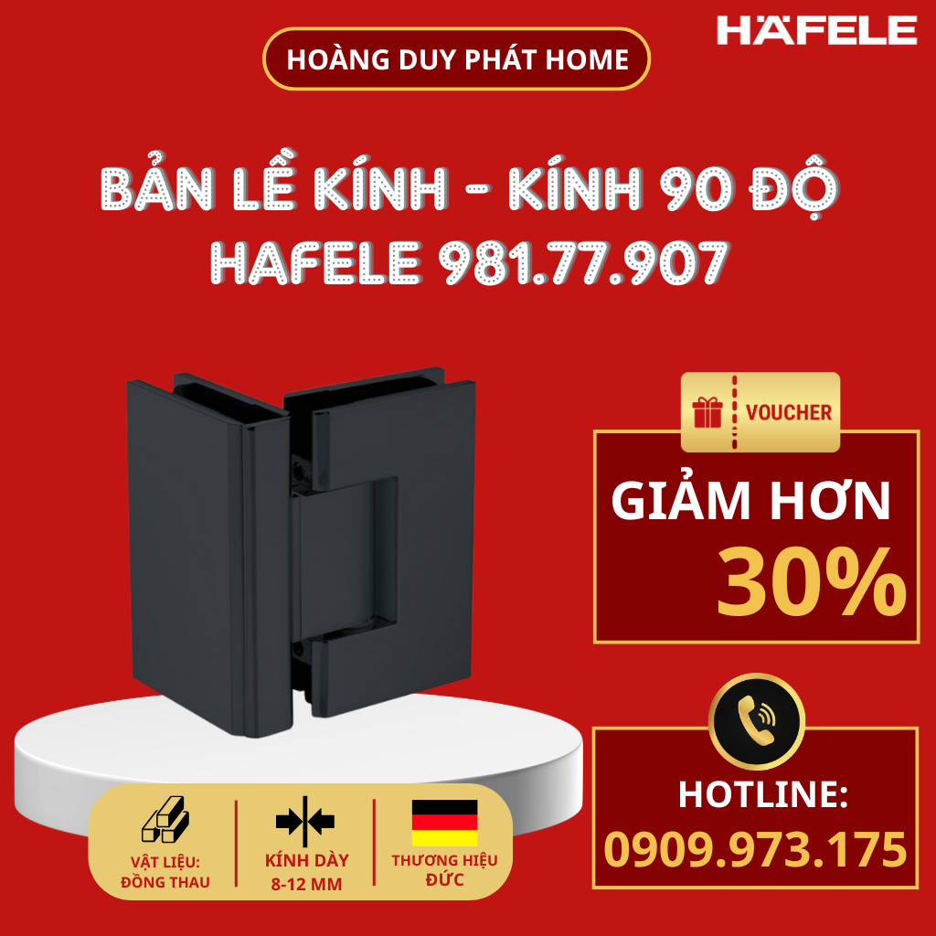 Bản lề Kính - Kính 90 độ màu đen Hafele