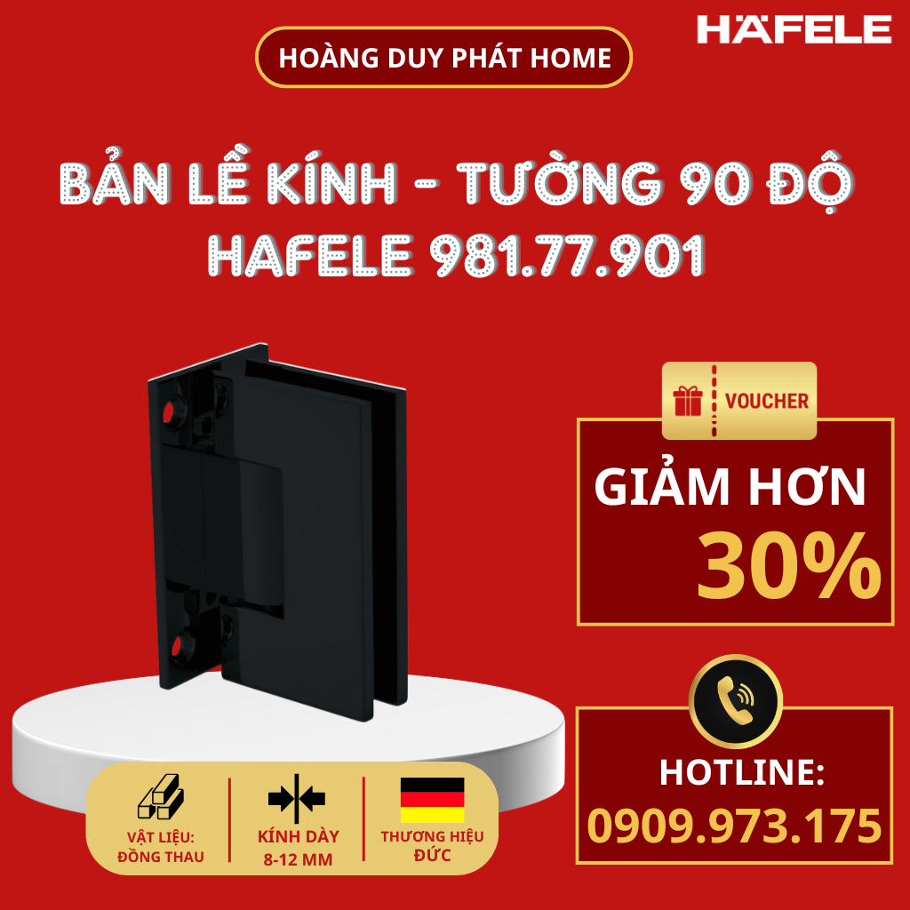 Bản lề Tường - Kính 90 độ màu đen Hafele