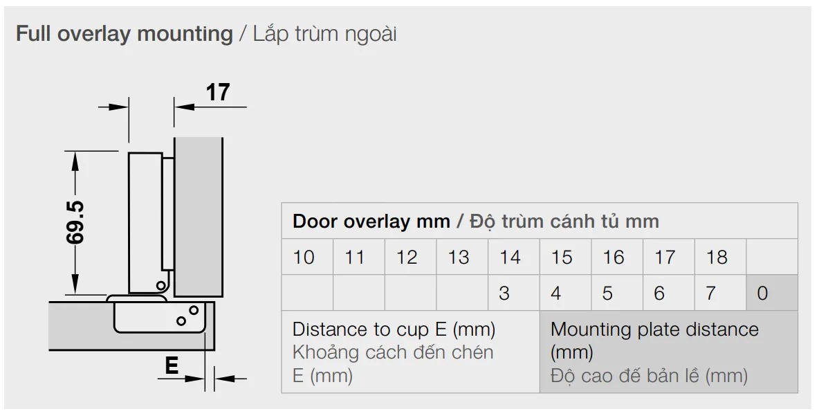 > Hệ chén bản lề: 48/6 mm