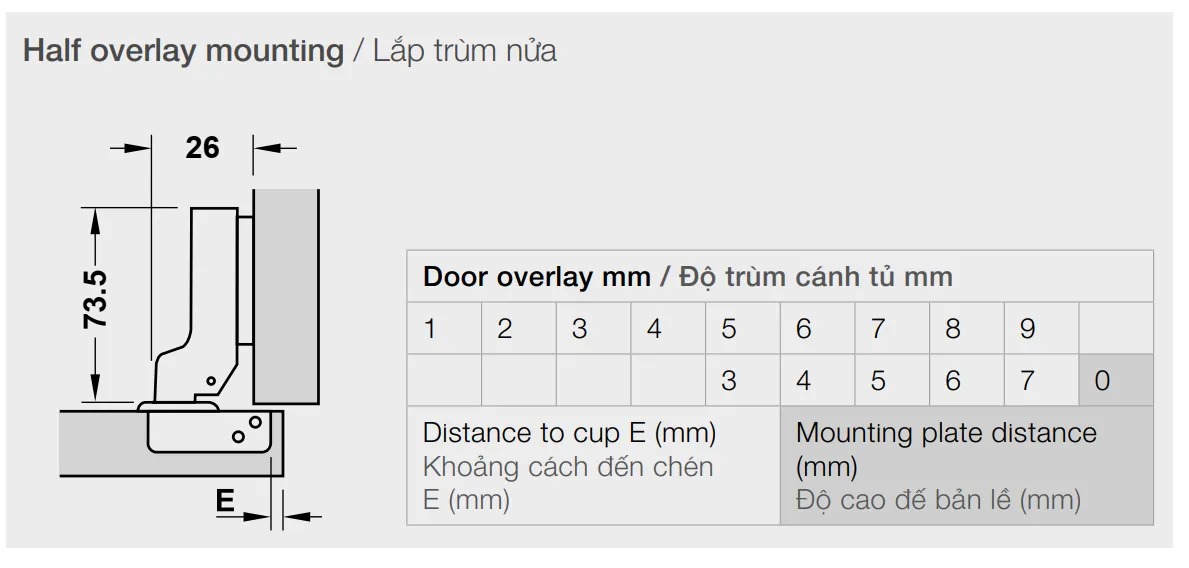 > Điều chỉnh: Điều chỉnh mặt bên ±3 mm, điều chỉnh chiều cao +2 mm