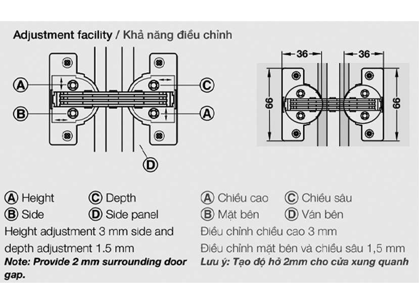 • Chất liệu: Chén bản lề bằng hợp kim kẽm, tay bản lề bằng thép