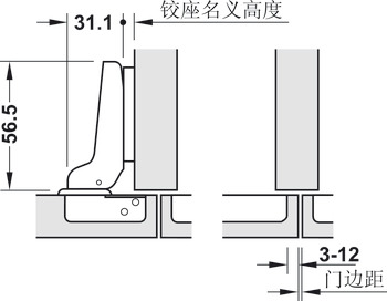 Chiều sâu lỗ khoan: Chén bản lề 12 mm