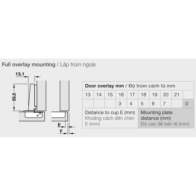 Chiều sâu lỗ khoan: Chén bản lề 12 mm