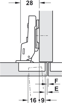 BẢN LỀ BẬT CHO CÁNH DÀY 25mm METALLA A HAFELE GÓC MỞ 95 ĐỘ