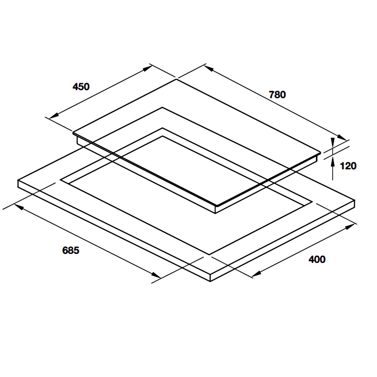• Kích thước lắp đặt: 685R x 400S mm