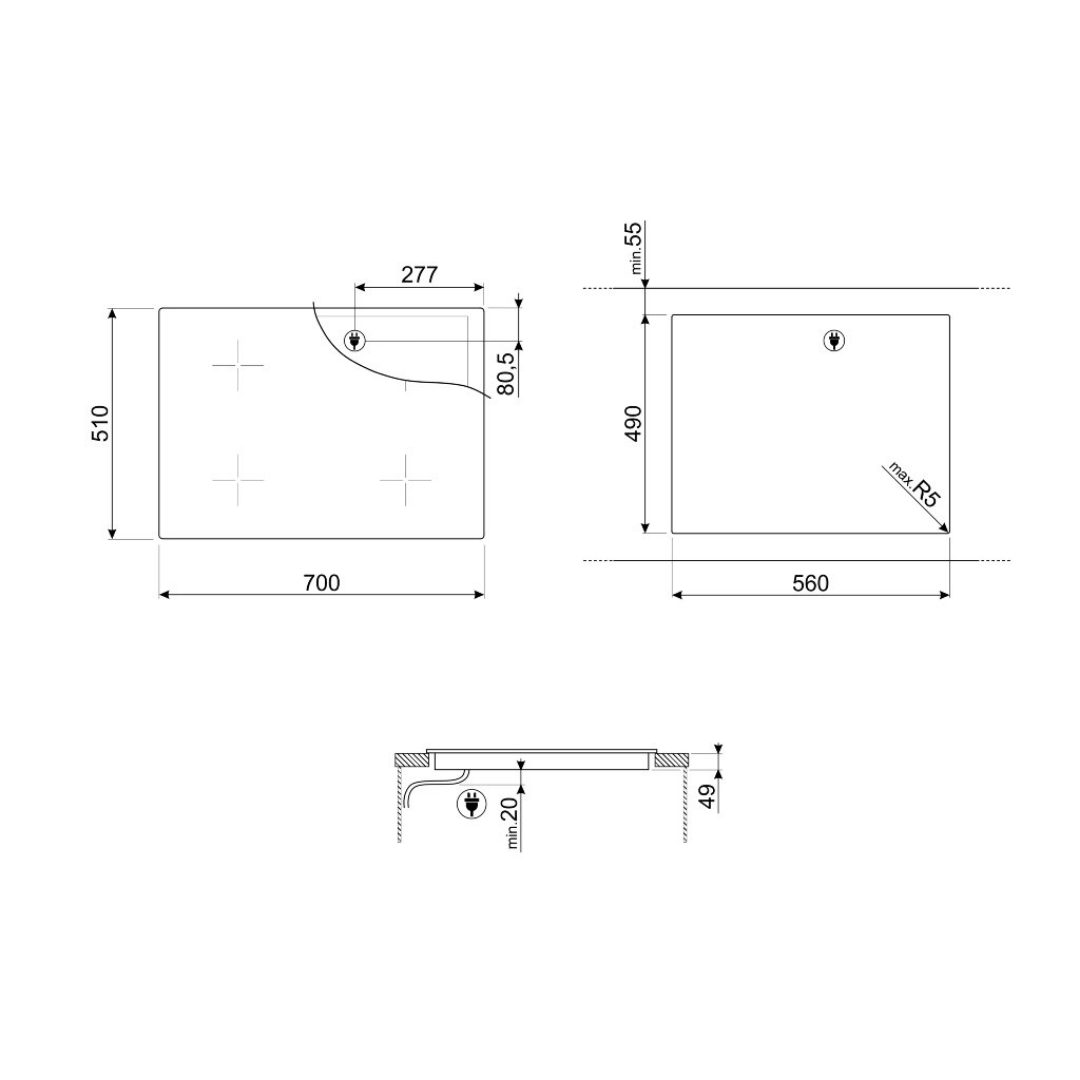 Kích thước vùng nấu kết hợp bên trái: 392 x 195 mm