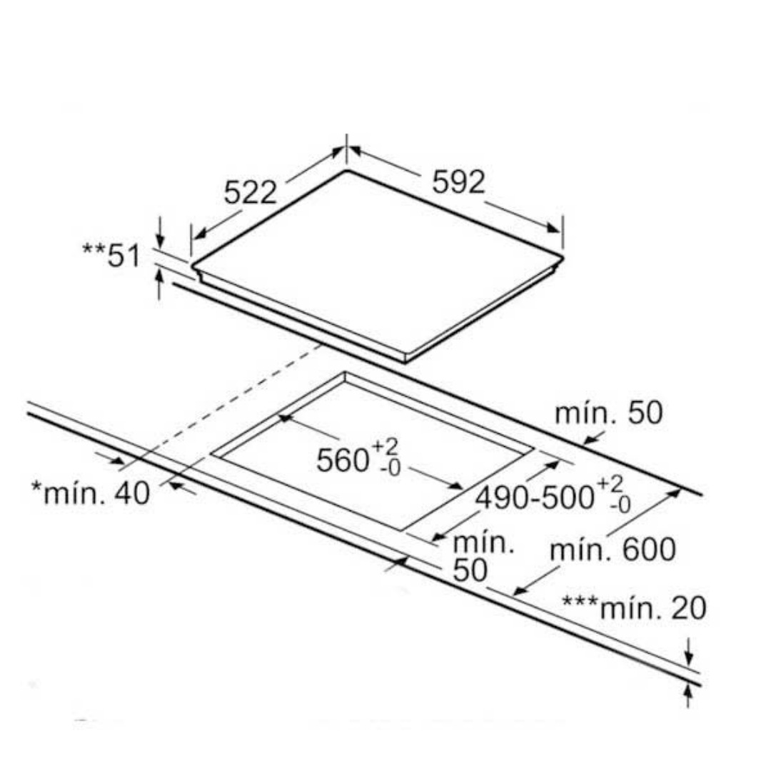 • Kích thước hộc bếp: 59C x 560-562R x 490–502S mm