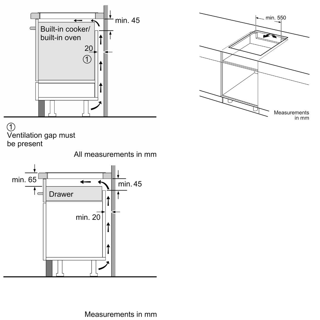 - Các vùng nấu: 1 x 380 mm x210 mm, 3.6 KW or 2 x 190 mm, 210 mm, 2.2 KW (tối đa 3.7 KW) ; 1 x Ø 280 mm, 2.6 KW (tối đa 3.7 KW) ; 1 x Ø 145 mm, 1.4 KW (tối đa 2.2 KW)