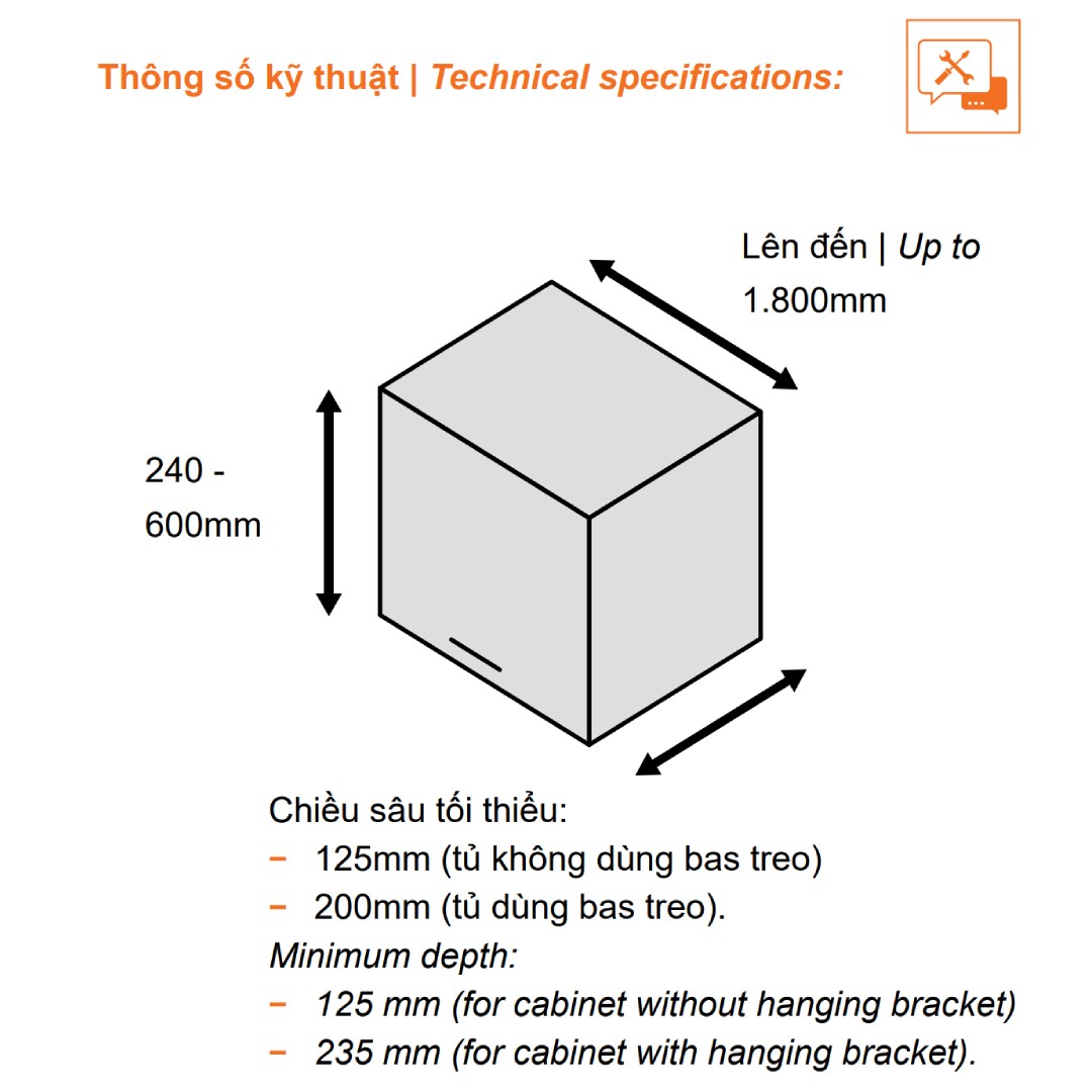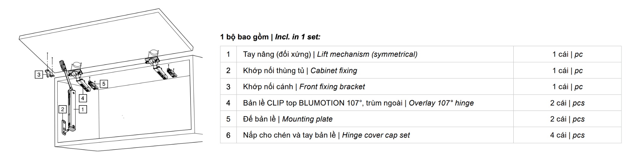 Lưu ý: Trường hợp cánh lớn, nặng vượt quá hệ số lực cho phép có thể tăng hệ số lực bằng cách lắp thêm bộ tay nâng ở cả 2 bên.