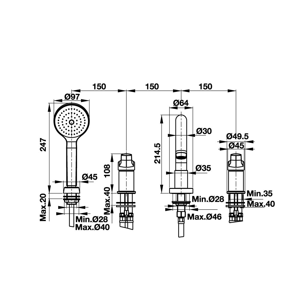 Bộ trộn bồn tắm 4 lỗ Hafele 589.02.607