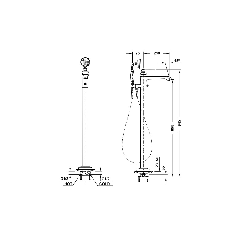 Bộ trộn bồn tắm đặt sàn Kyoto màu đen 589.35.093