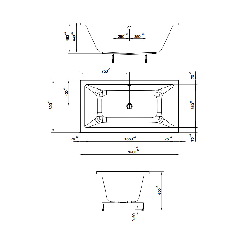 • Bồn tắm âm hình chữ nhật, bằng acrylic màu trắng