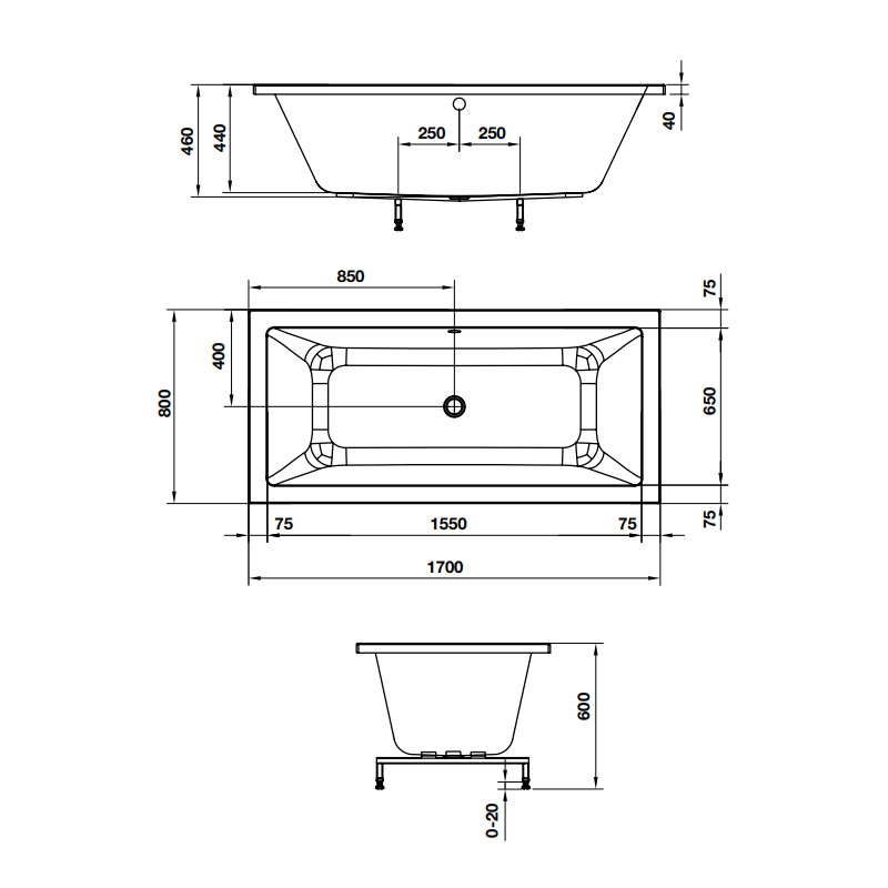 Bồn tắm âm hình chữ nhật Nagoya 1700 588.79.602