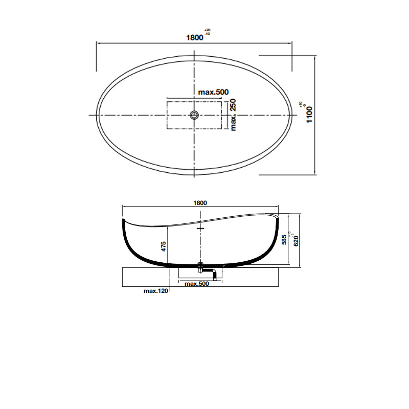 • Kích thước: 1800 x 1100 x 620mm• Vật liệu: Đá nhân tạo Solid Surface• Hoàn thiện: Trắng mờ• Có xả tràn• Bao gồm bộ xả pop-up và bẫy mùi