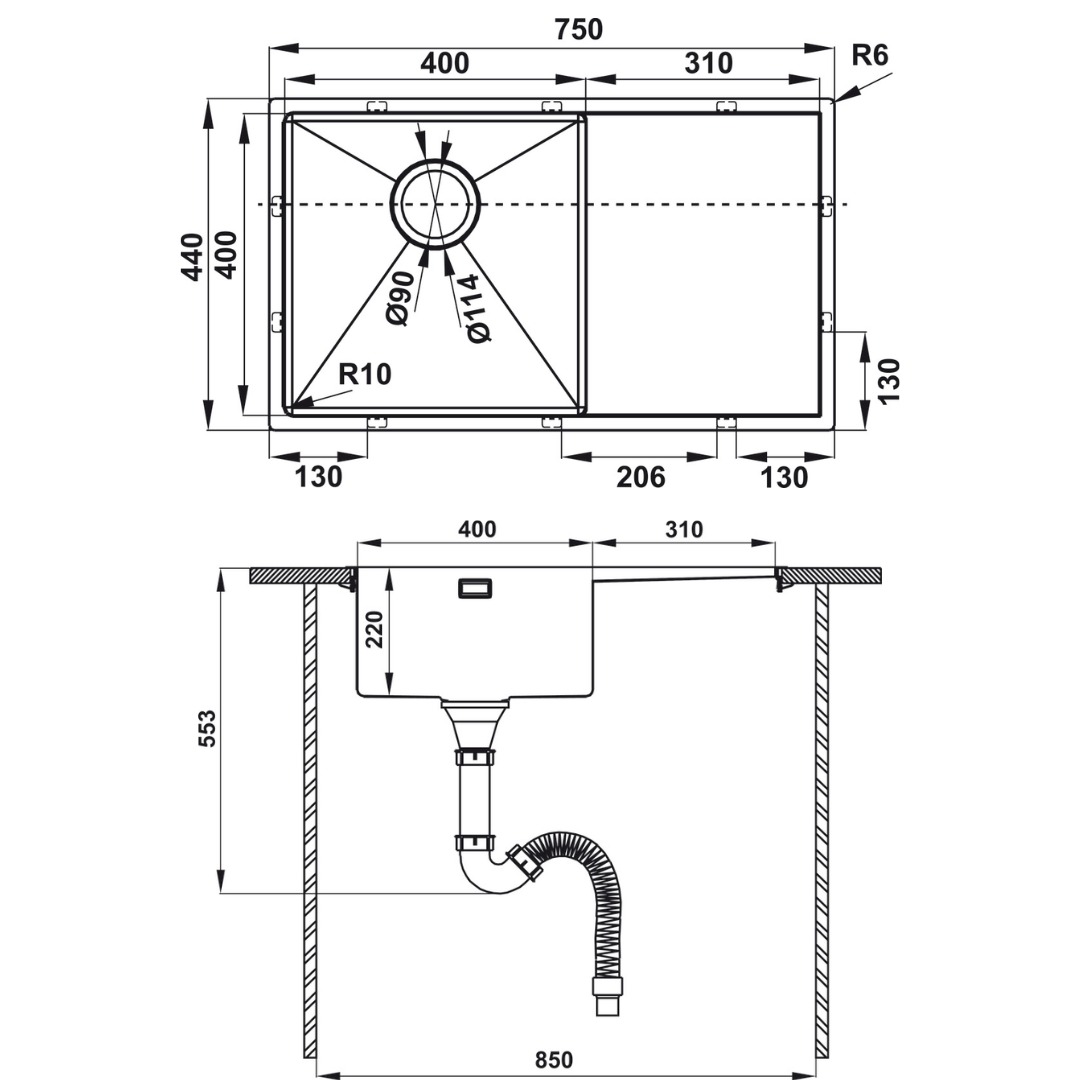 - Độ sâu bồn: 220 mm