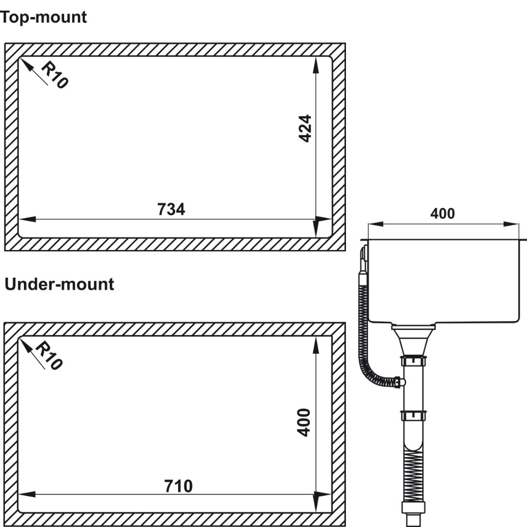 + Lắp nổi: 734D x 424R mm
