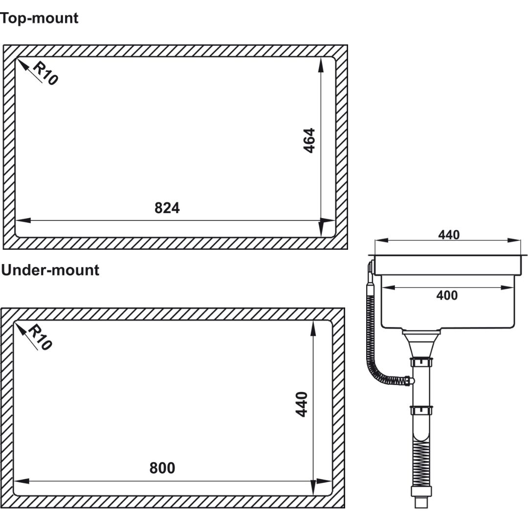 + Lắp nổi: 824D x 464R mm