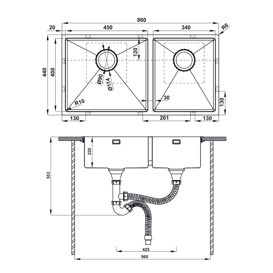 • Độ sâu bồn: 220 mm