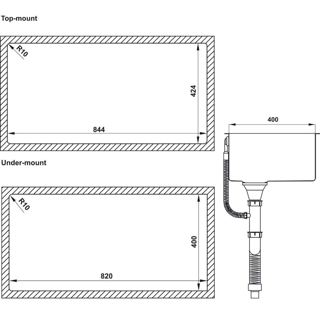 + Lắp nổi: 844D x 424R mm