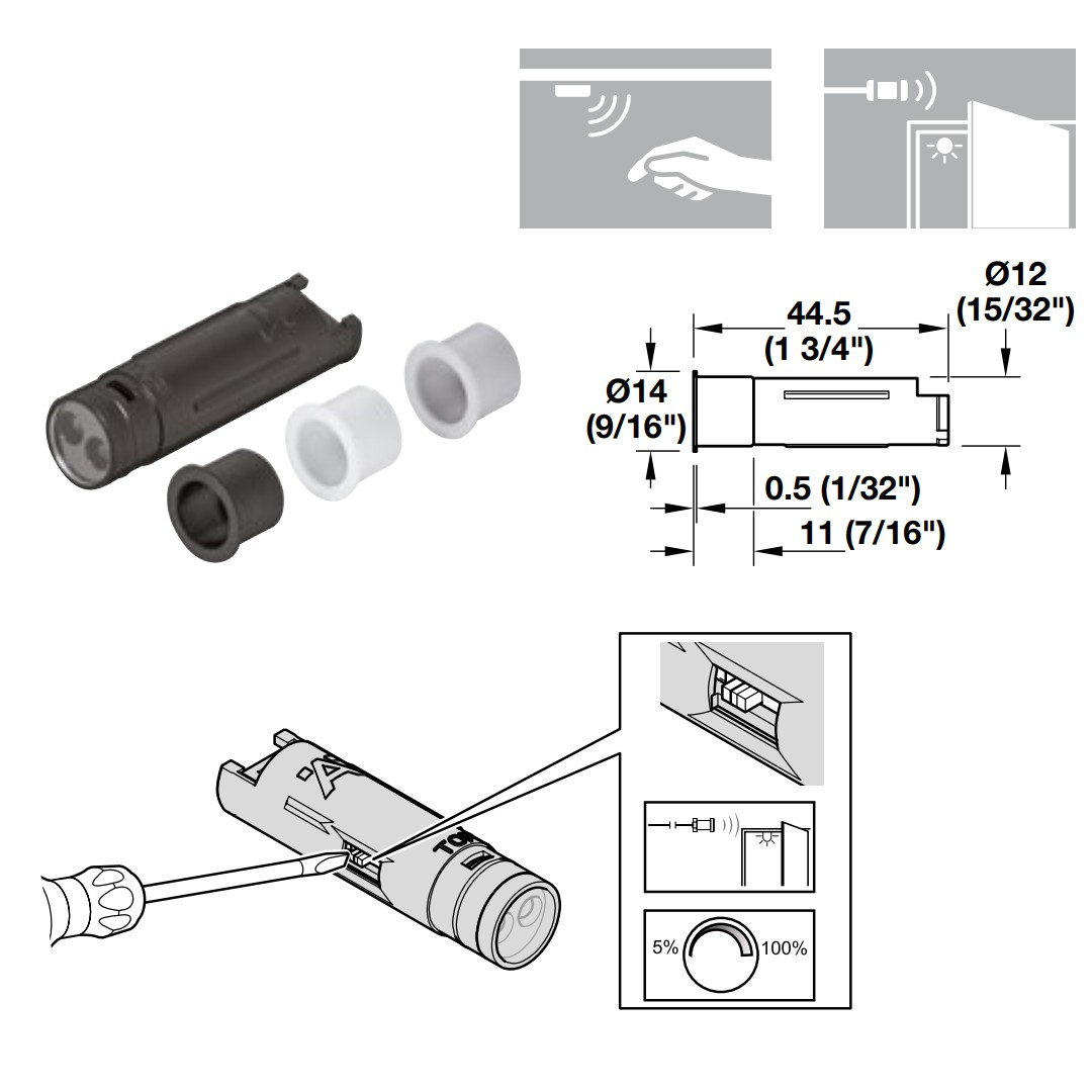 2 trong 1 cảm biến cửa/cảm biến không chạm, lắp nổi hoặc lắp âm, modular