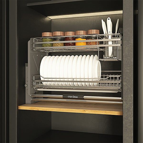 • Có kèm khay hứng nước, thích hợp để lưu trữ chén đĩa sau khi rửa