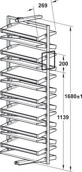 • Trọn bộ gồm: 1 khung treo, 1 cặp ray trượt trên dưới, 14 kệ, và 1 bộ phụ kiện điều chỉnh