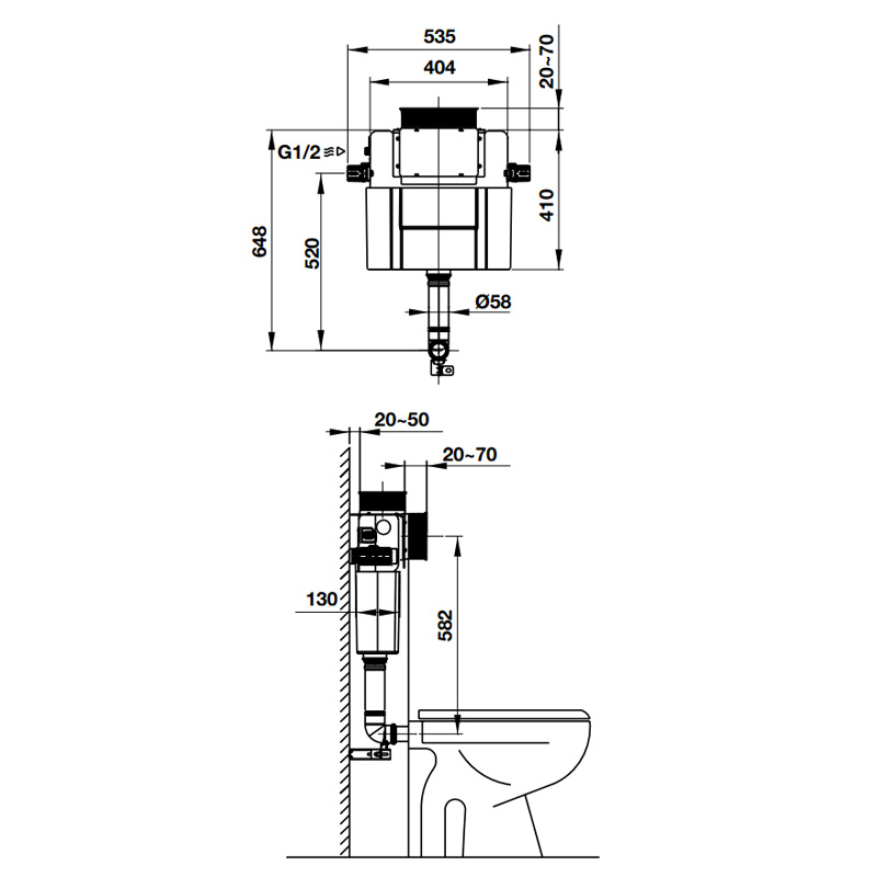 • Độ dày két nước: 130 mm
