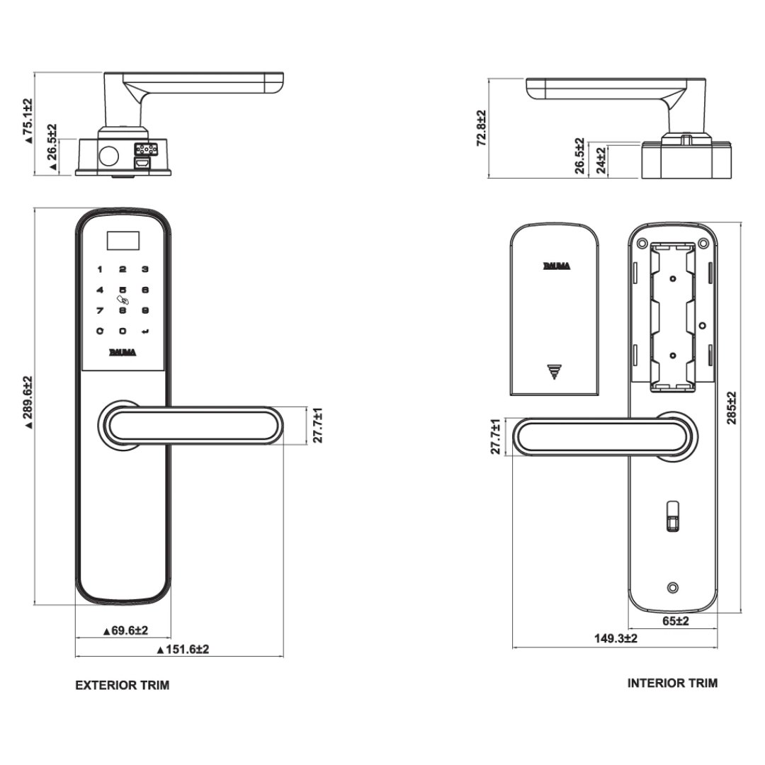 Khóa điện tử Bauma Hafele BM600 Thân khóa lớn
