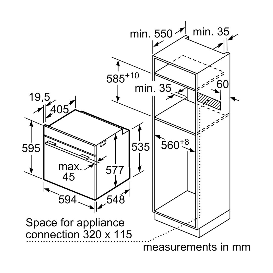 + Kích thước lò nướng (CXRxS): 595 mm x 594 mm x 548 mm