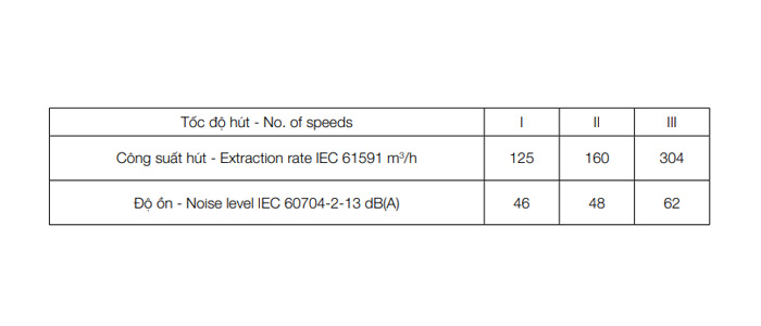 - Công suất hút xả tối đa: 304 m3/h