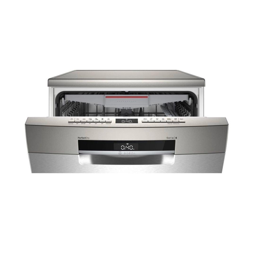 - EcoSilence Drive: Công nghệ độc quyền của Bosch giúp động cơ máy rửa bát mạnh mẽ hơn, yên tĩnh hơn và hiệu quả tẩy rửa cao hơn.