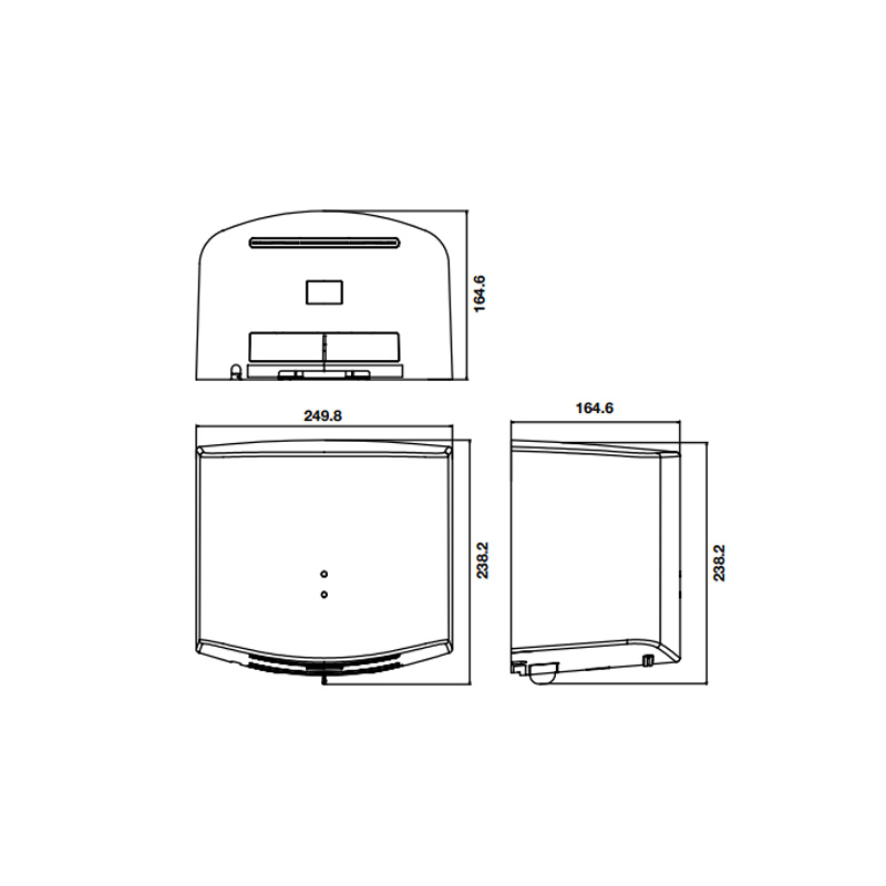 • Cao độ lắp đặt: 1170 mm• Cống suất đầu vào: 1450-1600 W• Vận tốc gió: 105m/s• Độ ồn: 76 dB @1m• Khoảng cách cảm biến: 15-20 cm• Chất liệu: Nhựa ABS• Màu: Trắng• Kích thước: 250 x 165 x 238 mm• Nguồn: AC 220-240V / 50Hz