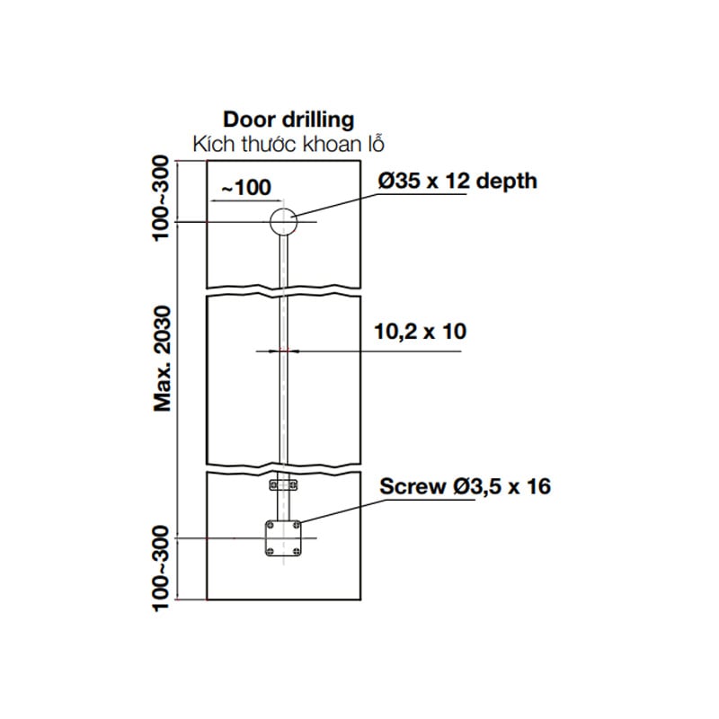 Lưu ý: Không sử dụng cho cánh cửa gỗ tự nhiên.