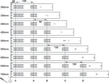 Lắp đặt vào mặt bên: Bắt vít vào dàn lỗ khoan 32 mm