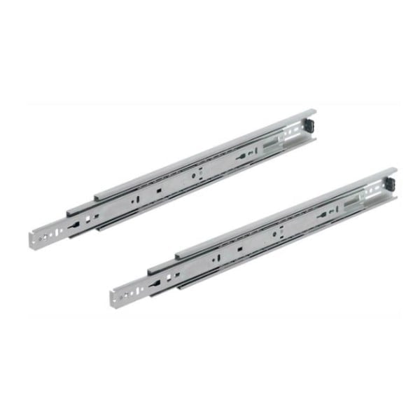 Trọn bộ gồm: 1 cặp ray trượt, 12 vít bắt gỗ và 6 vít Euro.