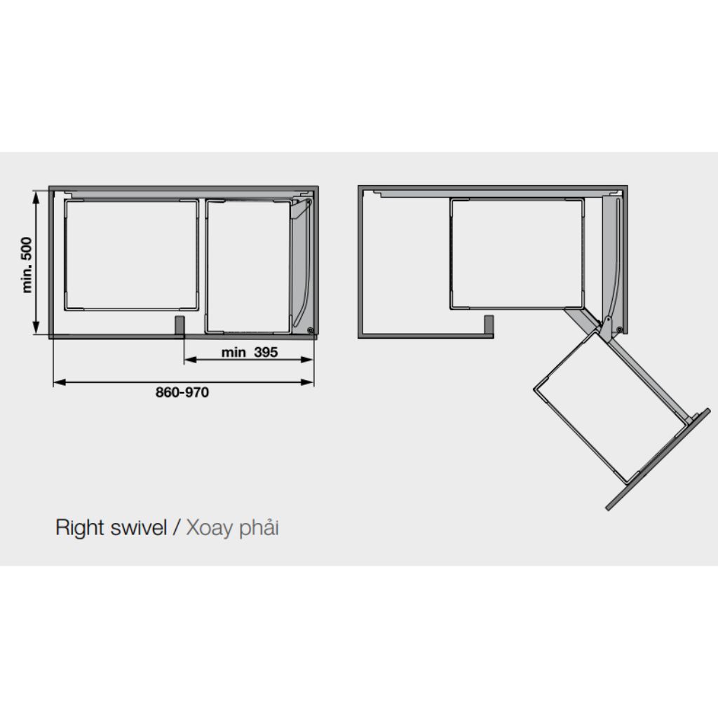 Đã bao gồm bộ phận giảm chấn SoftStopp, dành cho chiều cao lọt lòng tủ ≥540mm