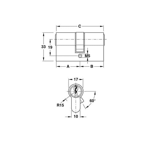 Ruột khóa Hafele hai đầu chìa dài 66mm