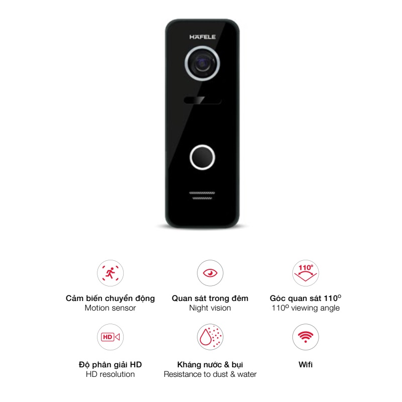 - Camera chuông cửa gắn bên ngoài, hỗ trợ quan sát và đàm thoại với chủ nhà thông qua màn hình bên trong nhà