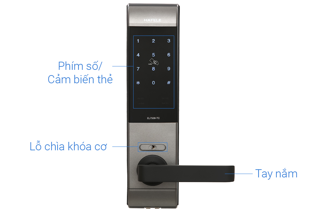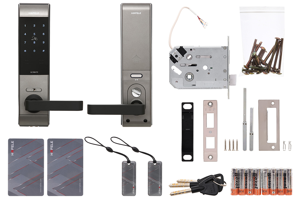 Khóa điện tử Hafele EL7500-TC Màu xám, thân khóa nhỏ ( 1 chốt chết )
