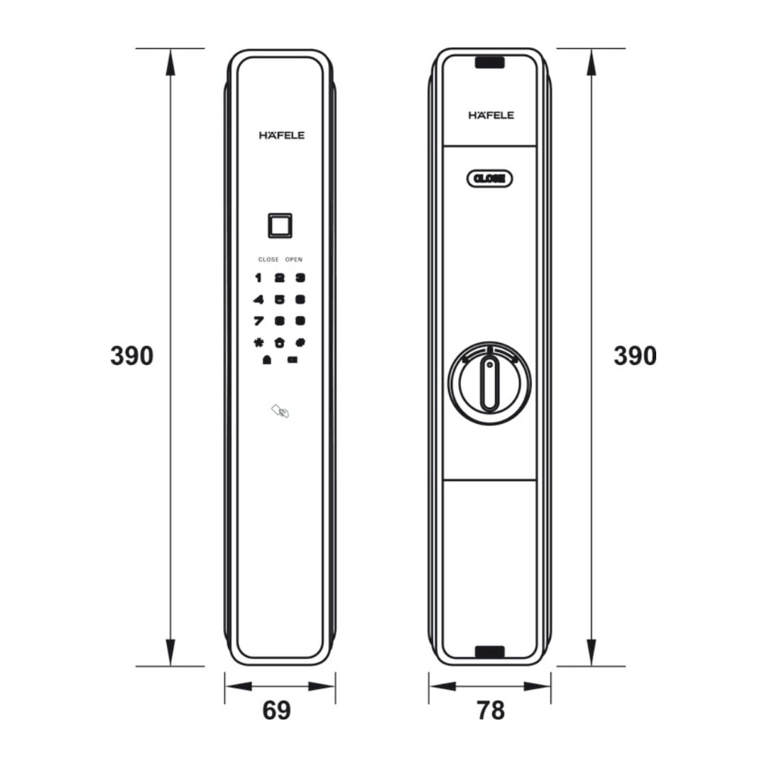 Khóa điện tử Hafele PP9000 Màu đồng bóng - Phiên bản tiêu chuẩn