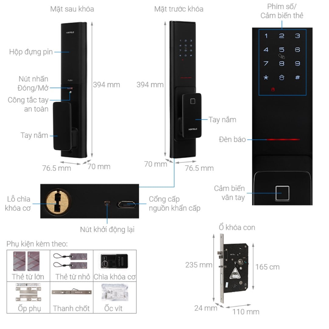 - Kích thước mặt ngoài 78.5 x 394 x 76.5 (RxCxS) (bao gồm tay nắm)
