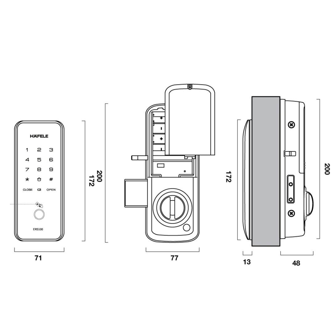 - Kích thước mặt ngoài: 71(Rộng) x 172(Cao) x 13(Sâu) mm
