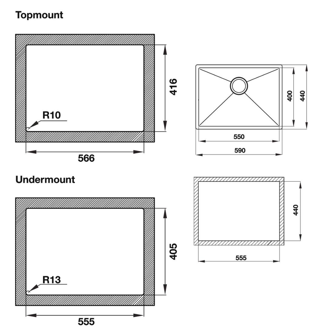 - Kích thước cắt đá: 560D x 410R mm.