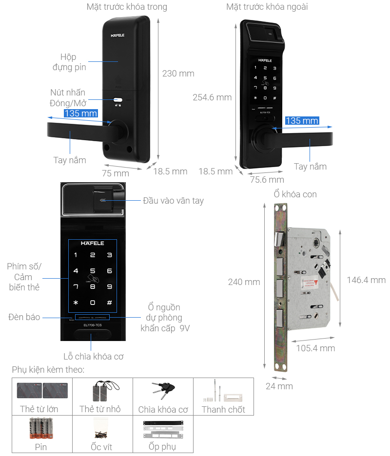 - Âm thanh cảnh báo phá khóa khi có lực mạnh tác động lên mặt ngoài của khóa