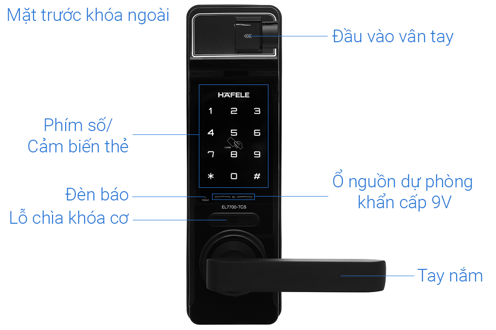 Khóa vân tay Hafele EL7700-TCS 912.05.584 Loại thân lớn ( 3 chốt chết )