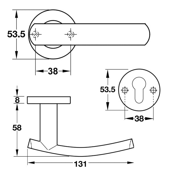 - Trọn bộ gồm: 2 tay nắm gạt, 1 bộ nắp chụp tay nắm, 1 bộ nắp chụp ruột khoá, 1 bộ vít.