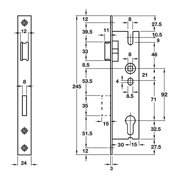 Thân khóa cho cửa đố nhỏ Hafele 911.77.260