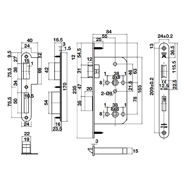 Thân khóa cho phòng WC B55/78A Inox mờ 911.02.157