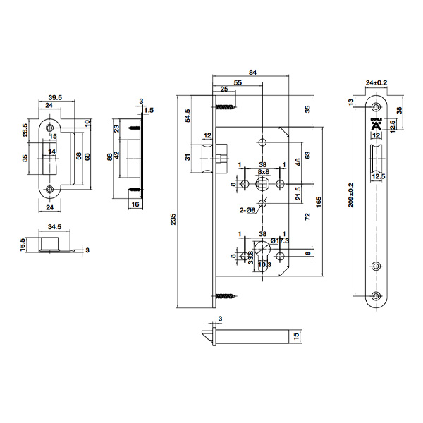 Bộ thân khóa cho cửa trượt Hafele 911.26.523