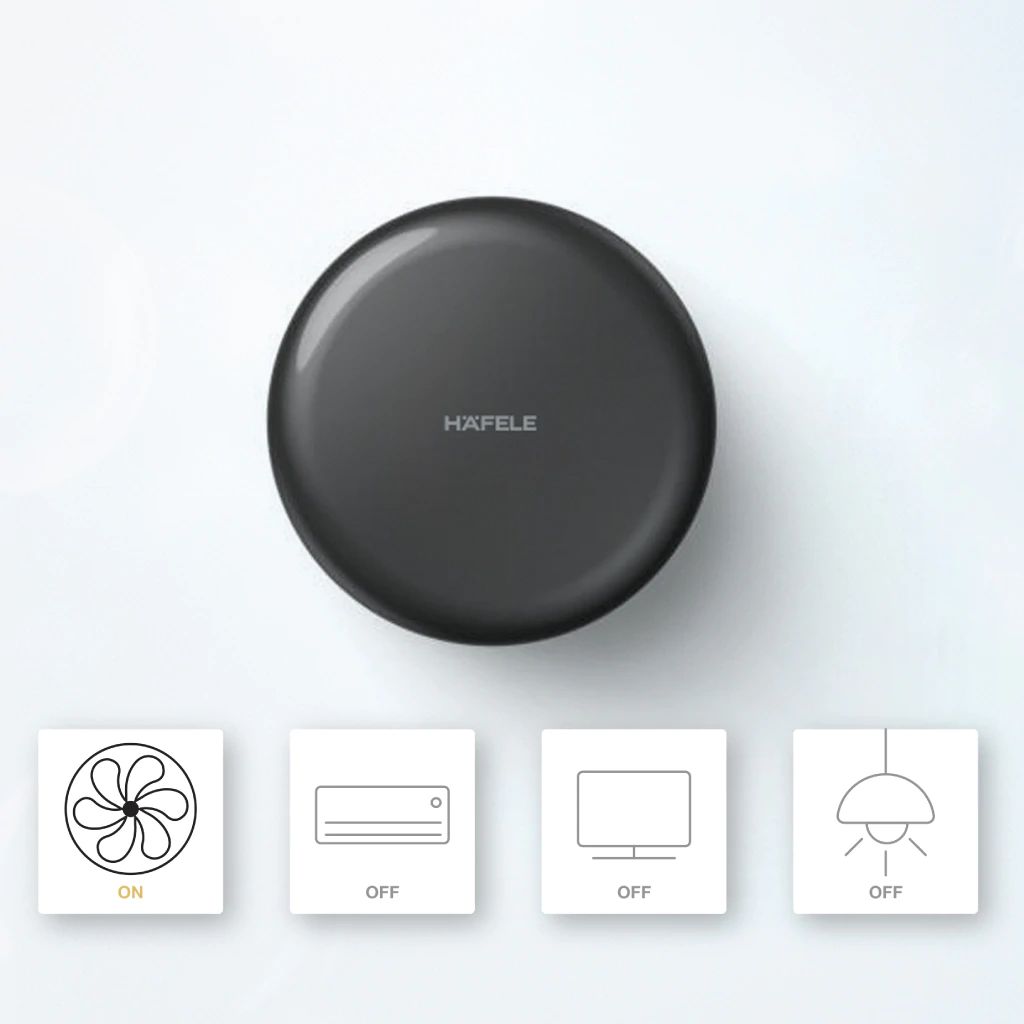 Thiết bị điều khiển hồng ngoại có thể điều khiển các thiết bị có sử dụng điều khiển từ xa hồng ngoại như Tivi, máy lạnh thông qua APP Hafele Smart Living hoặc giọng nói.